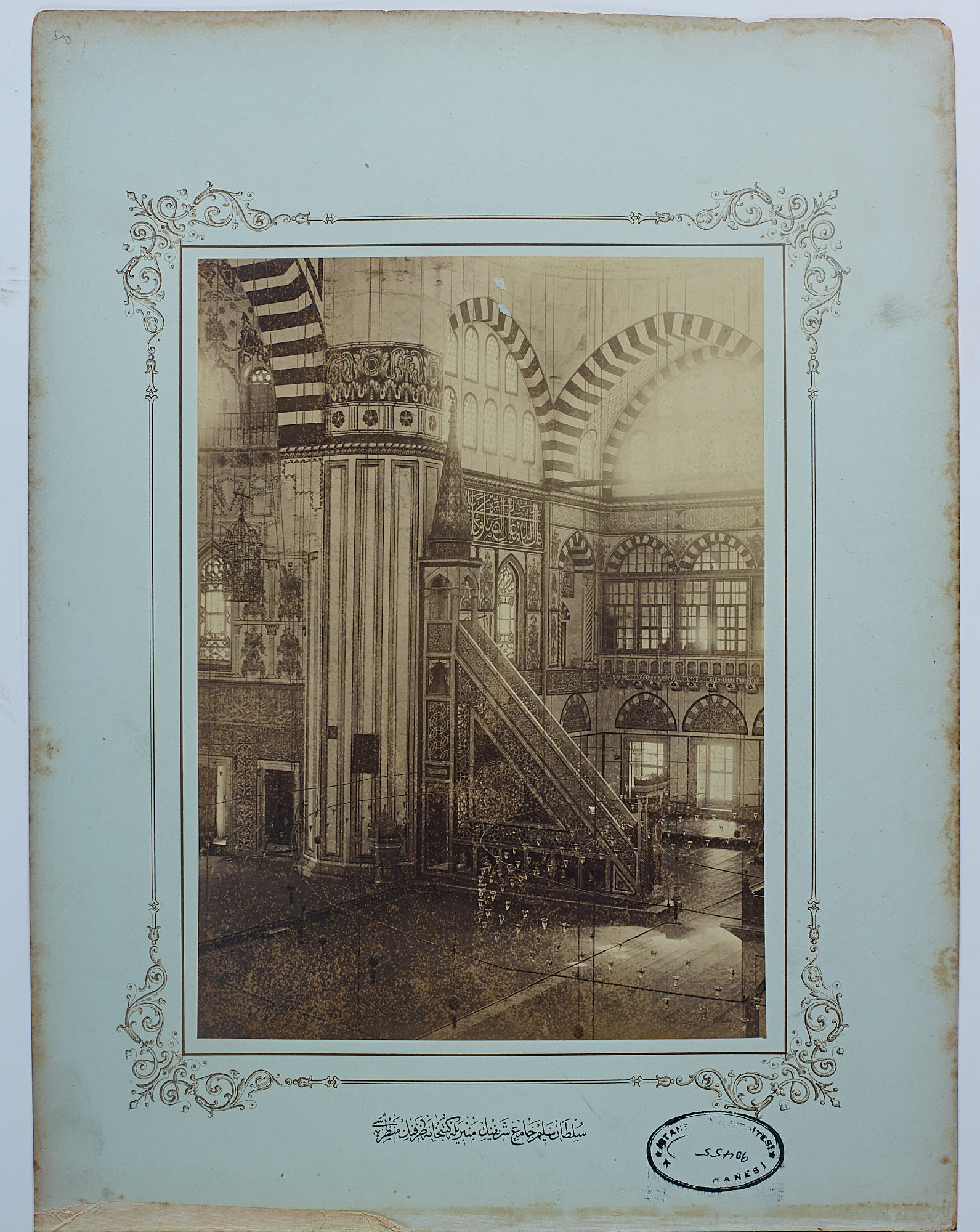 Edirne Selimiye Camii MinberiFotoğrafçı Bilinmiyor Edirne Selimiye CamiiTür: Fotoğraf Kaynak: İstanbul Üniversitesi Nadir Eserler Kütüphanesi → NEKYA90455/8 Bölge: Türkiye, Edirne, Merkez (Edirne) Editör Ali Cem Başlı Son güncelleme Ali Cem Başlı - 22 Mart 2024 FA No: 49330 Alıntı: "Edirne Selimiye Camii Minberi", Foto Atlas, 22 Mart 2024, https://fotoatlas.net/image/?p=49330. ⚑ Hata bildir veya katkıda bulun