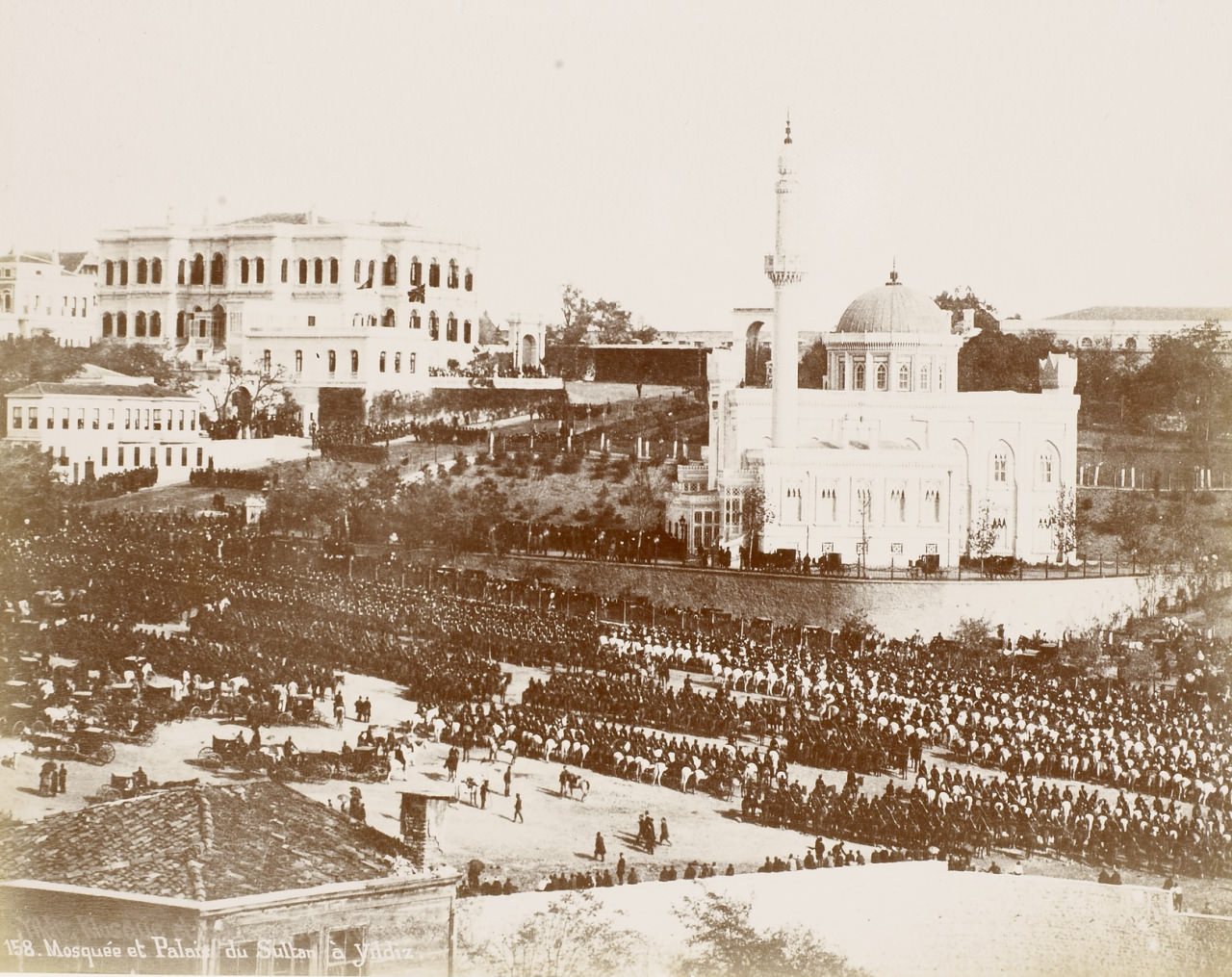 Yıldız’da Cuma SelamlığıGülmez Frères1885 – 1890 Cami Yıldız Hamidiye Camii Yıldız Sarayı Büyük Mabeyn Köşkü Yıldız Sarayı Selamlık KasrıTür: Fotoğraf Kaynak: Kaynak Bilinmiyor Bölge: Türkiye, İstanbul, Beşiktaş, Yıldız Editör Muhittin Bayram Son güncelleme Muhittin Bayram - 14 Kasım 2025 FA No: 62605 Alıntı: "Yıldız’da Cuma Selamlığı", Foto Atlas, 14 Kasım 2025, https://fotoatlas.net/image/?p=62605. ⚑ Hata bildir veya katkıda bulun